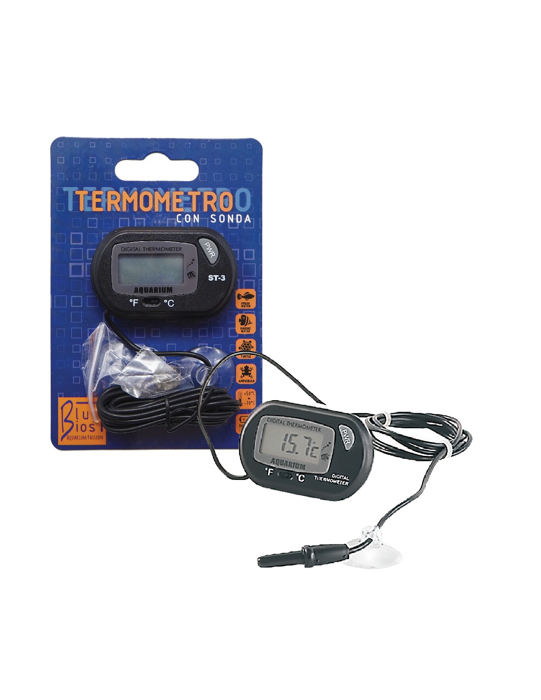 BluBios Termometro per acquari e terrari con sonda.