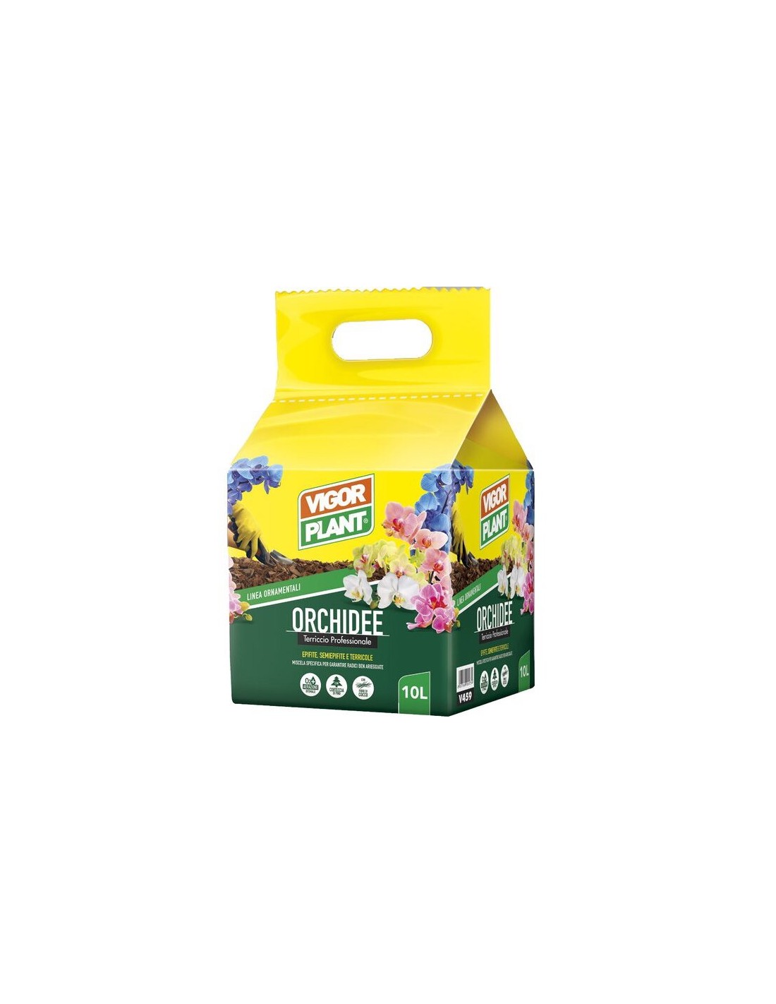 Vigorplant terriccio professionale per Orchidee, composto da corteccia di pino e fibra di cocco, favorisce porosità e drenaggio per lo sviluppo di tutti le orchidee mantenendo una sufficiente riserva idrica e nutrizionale.Formato da 10 litri.