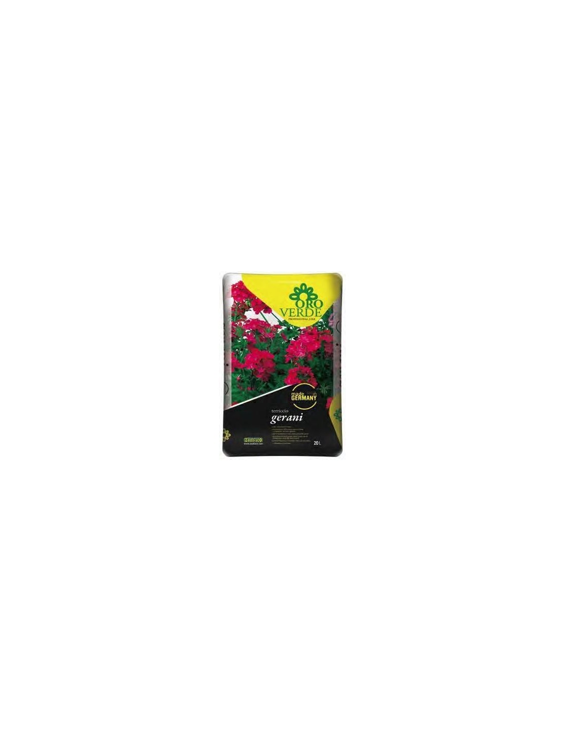 Torbe arricchite con Elementi Nutritivi; terriccio speciale per Gerani ed altre piante da balcone per fioriture brillanti e prolungate.100% torba tedesca insaccata direttamente allorigine.Caratteristiche:La torba Oro Verde Gerani è un prodotto naturale che risulta ideale per la coltivazione in vaso o cassetta di gerani (in generale tutti i pelargonium), surfinie, petunie e piante fiorite in genere. La sua composizione a base di Torbe Brune Tedesche di Sfagno Naturali (muschi degradati nel tempo) di varie profondità, fanno di questo prodotto lambiente ideale dove collocare le radici delle vostre piante. La giusta granulometria assicura assorbenza Idrica e aerazione adeguata.La torba Oro Verde Gerani è arricchita con un concime NPK a lenta cessione per una maggiore resa del terriccio. Inoltre la sua composizione 100% naturale garantisce alle piante la totale assenza di infestanti, funghi, insetti e materiali tossici.