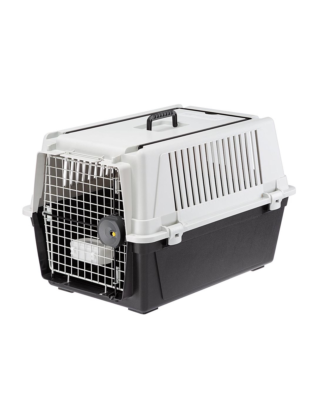 Il trasportino per cani Atlas 40 ha fondo e parte superiore realizzati in solida resina termoplastica, la porta è in acciaio plasticato, dotata di chiusura di sicurezza di recente restyling, semplice da usare, efficace e sicura: ruotando la manopola, vengono infatti attivati quattro punti di fissaggio che ancorano l'anta alla struttura principale del trasportino evitando così spiacevoli aperture accidentali durante il viaggio. La porta presenta inoltre una maglia di 25 x 25 mm, studiata per rispondere alle normative IATA in vigore per quanto riguarda il trasporto degli animali domestici.